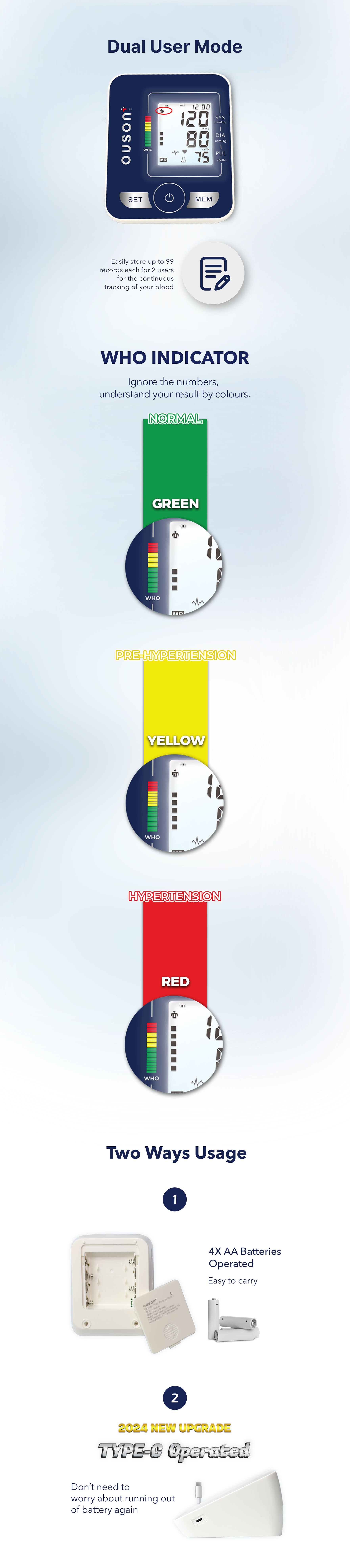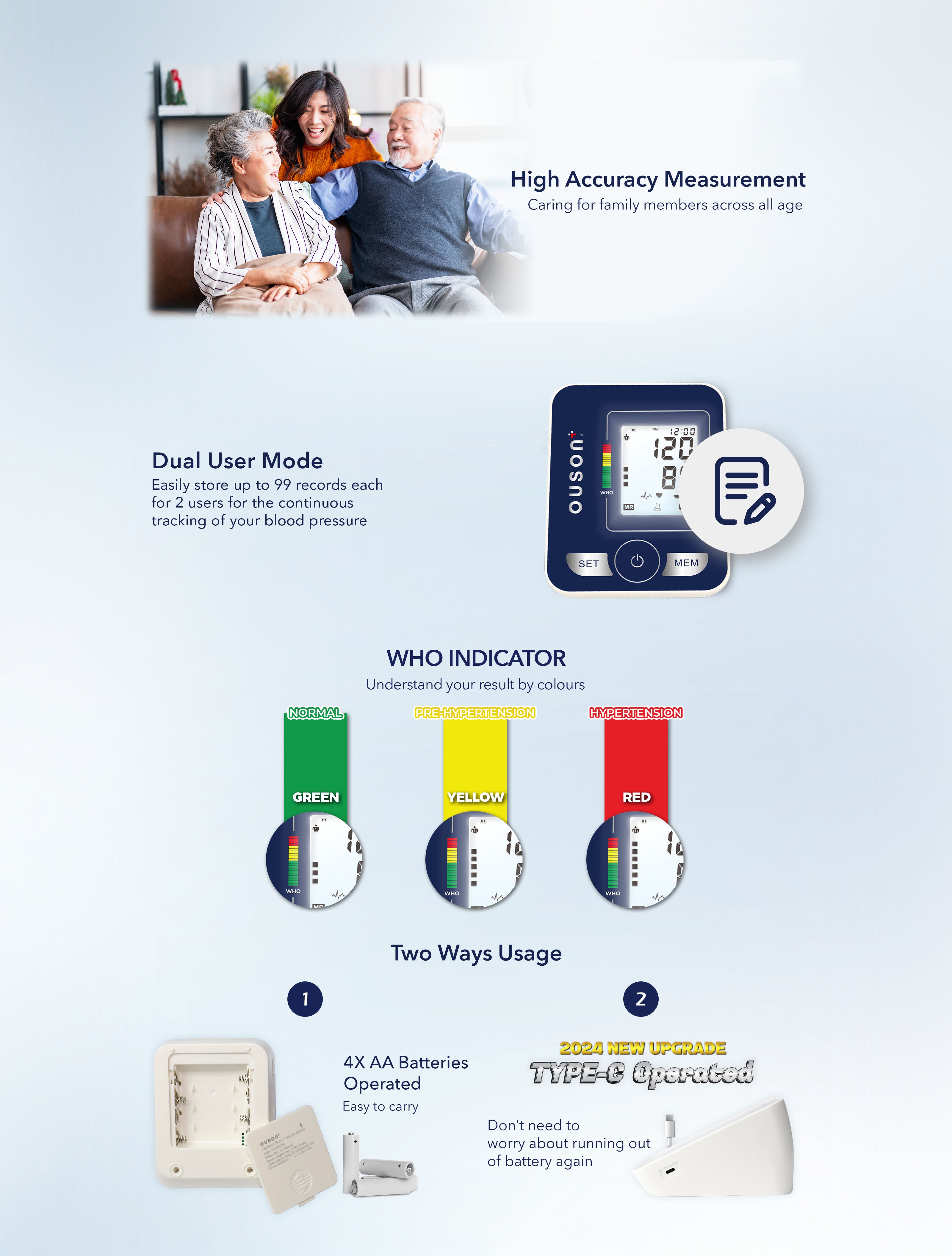 Safety Note: Ouson Blood Pressure Monitor & Arm Cuff is designed for adults 18 years old and above only.
