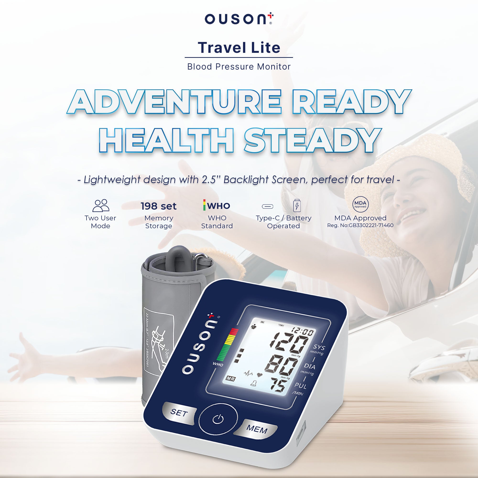 Ouson Travel Lite Backlight Arm Type Electronic Blood Pressure Monitor